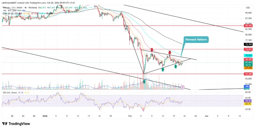 Since last week, the Bitcoin price has witnessed a notable correction from $70,939 to $67,370 amid the broader market uncertainty. Amid this downswing, the coin price gave a bearish breakdown from the support trendline of inverted pennant pattern from 4-hours time frame chart.